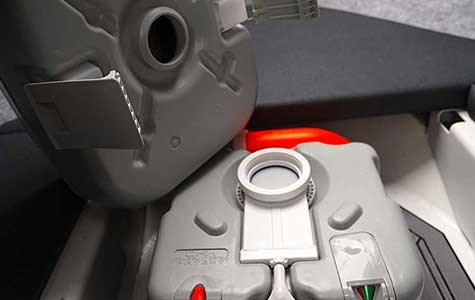 The portable toilet is equipped with a smart flushing mechanism that makes cleaning easy and reduces odours if you follow the instructions correctly and use sanitary fluid. Emptying is done using the built-in pipe. You can easily empty it into a regular toilet when you are at port or in the emptying facilities as mentioned earlier. Once the contents have been emptied, rinse with fresh water and top up the sanitary fluid.