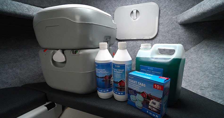 Use the right cleaner for your chemical toilet and remember to top up the sanitary fluid to ensure an odour-free experience on board.