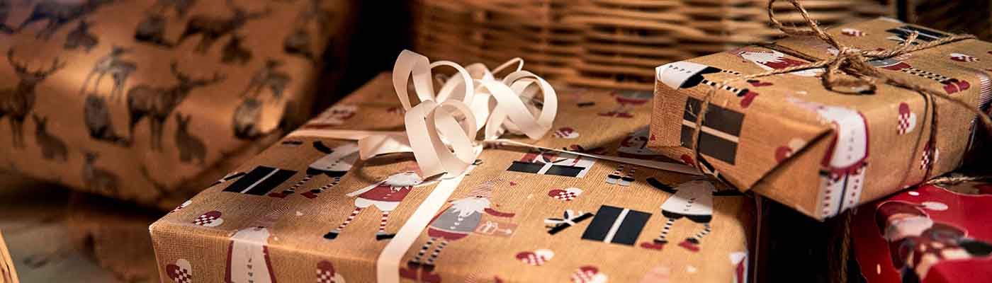 Se vårt utvalg av gavepapir og gavebånd for å gi julegavene dine det lille ekstra.