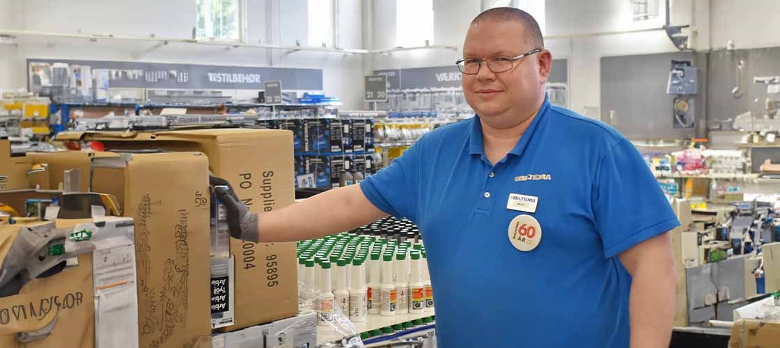 Well, I trained at Toyota as a spare parts clerk. I then applied for some different jobs because I couldn’t stay where I was an apprentice. I sent an application to Biltema Næstved, but they didn’t need anyone at that time. My former manager saved the application, and he called me a while later and asked me to come for an interview. I was interviewed and got the job, and I’ve been here ever since.