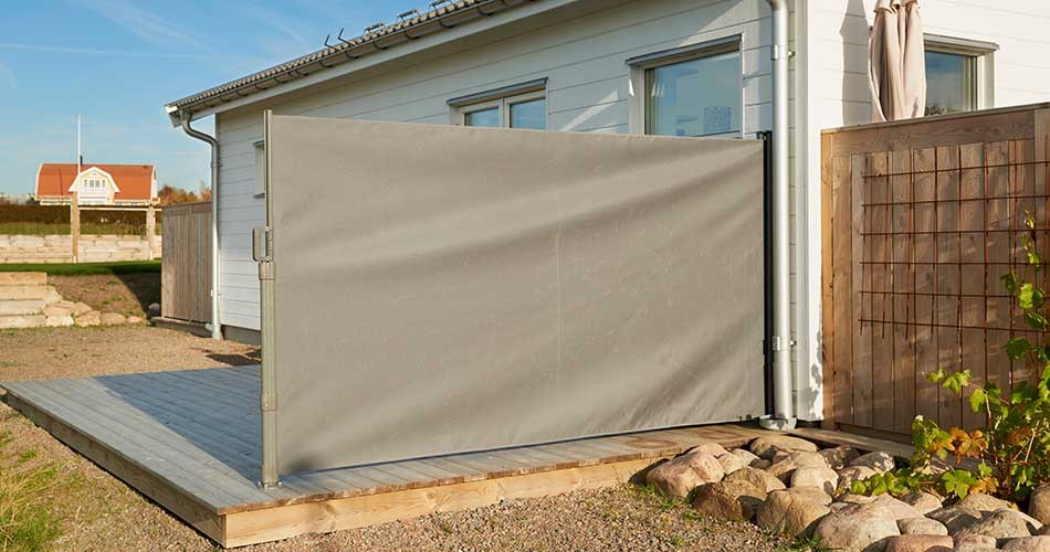 Hvis du vil beskytte hele balkongen mot vind, sol og nysgjerrige blikk fra naboene, kan du montere en sidemarkise som et alternativ til tradisjonell balkongbeskyttelse. Den er perfekt når du trenger beskyttelse mot lav sol og lett vind.