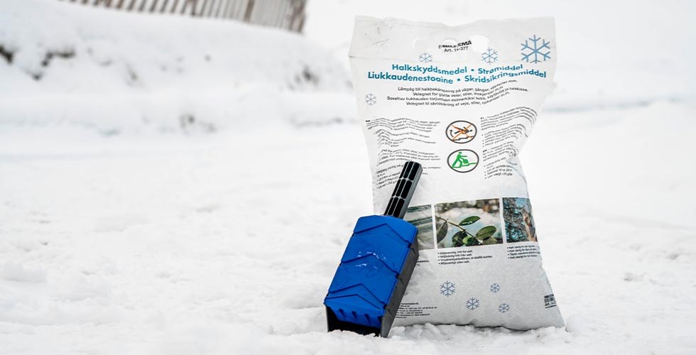 For de lettere jobbene er det hensiktsmessig å ha en skuffe som er effektiv på mindre områder. Strømiddel som strøs utover med en håndstrøer gir deg et tryggere og ryddigere område å bevege seg på. Fordelen med strømiddel uten salt er at den er miljøvennlig, og ufarlig for både dyr og planter.