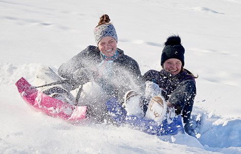 Se opp i bakken! Bruk timer i akebakken med en snowracer, et rumpeakebrett eller et tradisjonelt akebrett. Fartsfylte leker i snøen er en favoritt blant mange barn (og voksne)