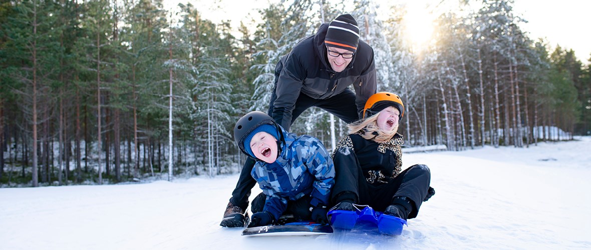 Se opp i bakken! Bruk timer i akebakken med en snowracer, et rumpeakebrett eller et tradisjonelt akebrett. Fartsfylte leker i snøen er en favoritt blant mange barn (og voksne)