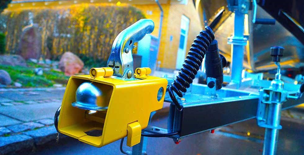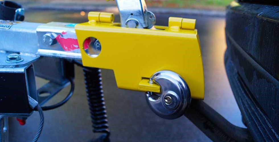 Tilhengerlås av god kvalitet - En kraftig lås på tilhengerens kobling er en god beskyttelse mot tyveri. Her kan ikke tyven koble en bil til tilhengeren og stikke av med den.