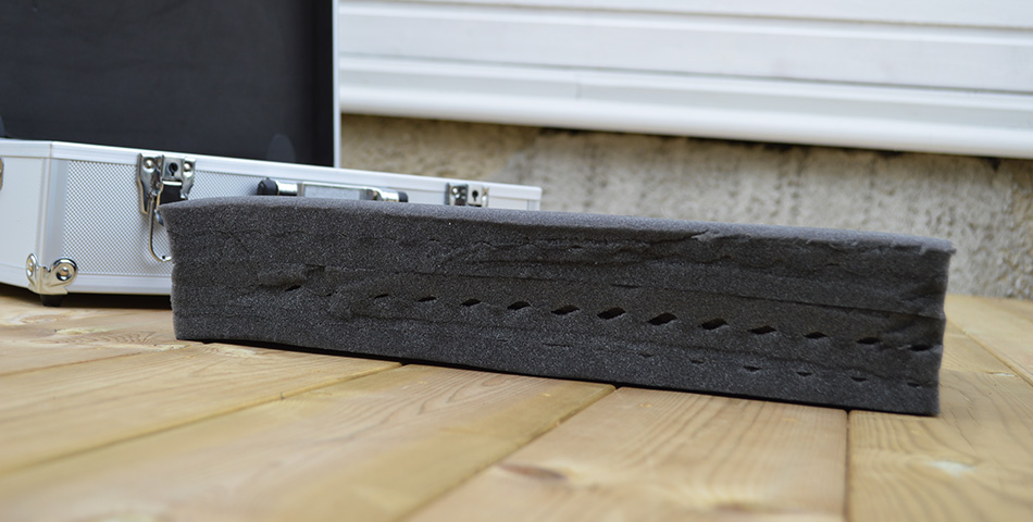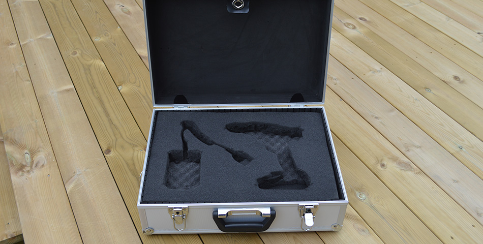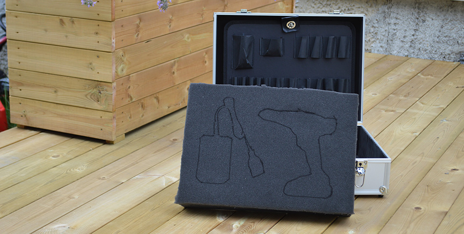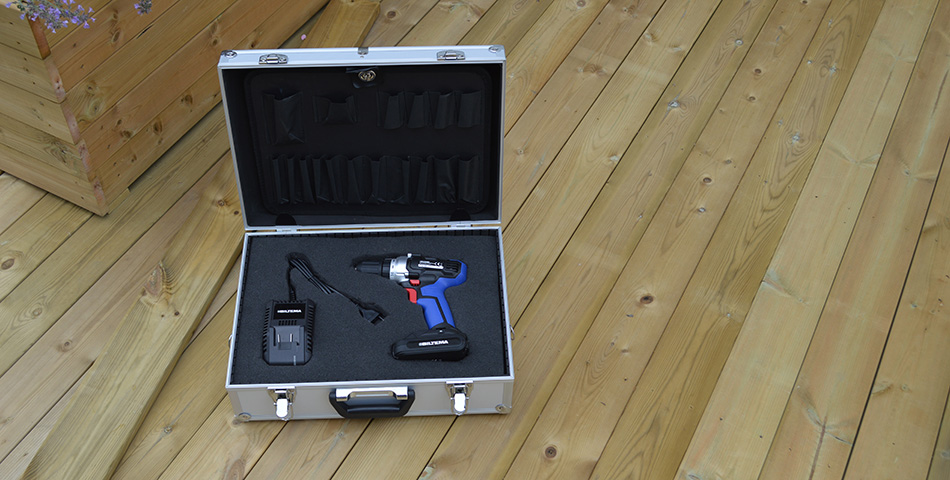 Når du er ferdig med dette så har du et perfekt innlegg til drillen eller annet verktøy. I vårt eksempel har vi valgt å skjære ut spor som ledningen til laderen kan ligge i, men den kan også ligge løst. Det sparer deg for litt tid. Et siste tips kan også være å lime fast dempematter i lokket på kofferten. Da vil verktøyet presses litt ned og ligge i ro når kofferten transporteres eller står på høykant.