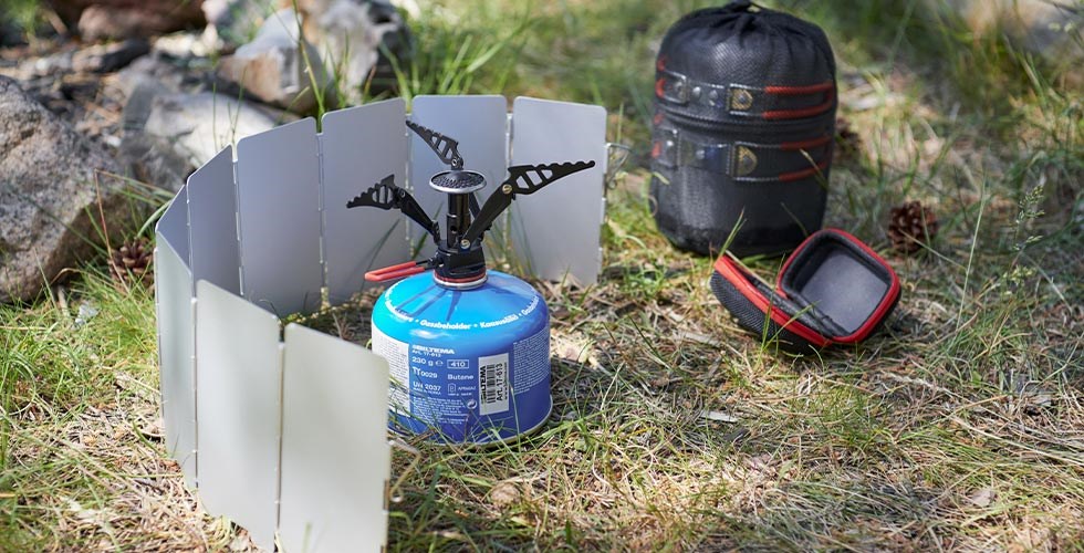 En gassbrenner med tre bein som står for seg selv, er mye mer stabil og tar fortsatt lite plass i sekken, da den kan legges sammen.