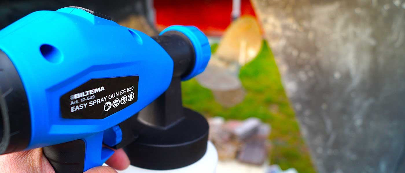 Malingssprøyten er den metoden som krever mest kunnskap for å forhindre at malingen påføres på feil måte, og derfor er det lurt å prøve på en pappbit først hvis du ikke har brukt malingssprøyte før. Malingssprøyten gir en fin og jevn overflate, men den krever litt trening for å unngå at malingen renner.