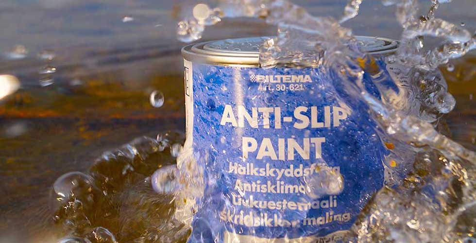 Mange steder på båten er det en fordel at underlaget ikke er for glatt. Her kan du for eksempel bruke en spesiell sklisikker maling, slik at du kan gå trygt på dekk.