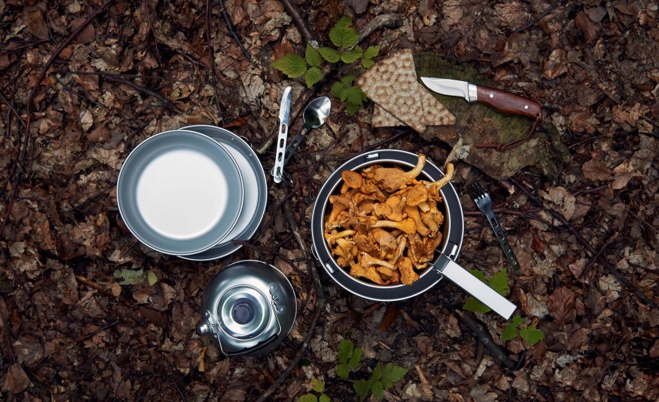 Steke sopp - Ta med utstyr for å tillage soppen i skogen