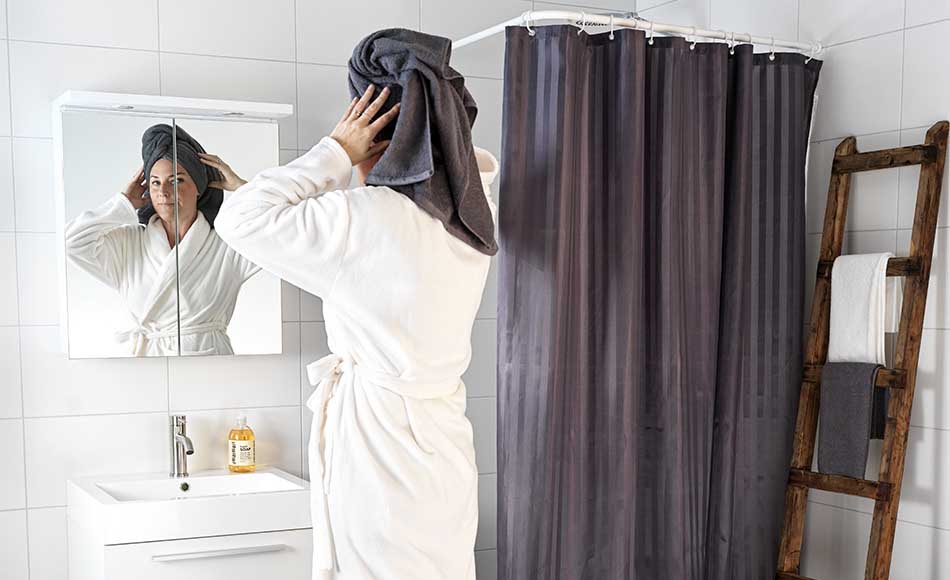 Det er også viktig å bruke viften på badet for å få ut fuktig luft som oppstår når du dusjer eller bader. Har du ikke vifte på badet bør du få installert en slik. Husk at det skal være en luftspalte under baderomsdøren for å få god luftgjennomstrømning. Det er mulig å ettermontere ventilrister nederst på dørbladet dersom du ikke har luftespalte.