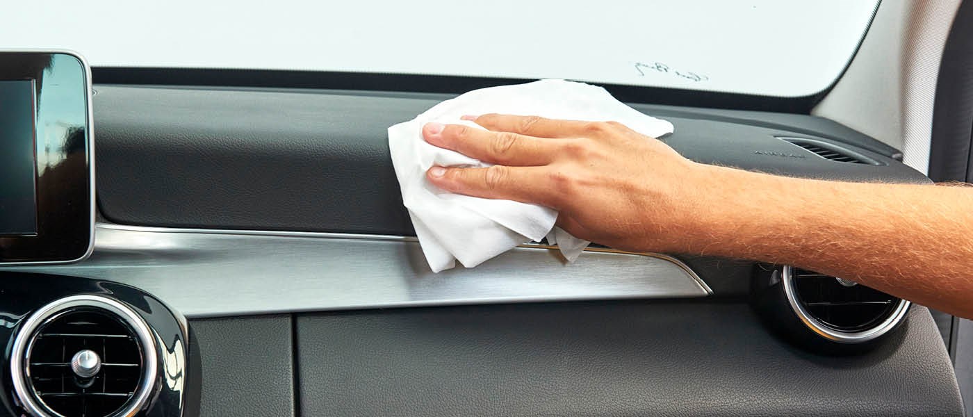 Dashbord kan ofte bestå av mange ulike typer stopp og overflater. I noen tilfeller er det utfordrende å få dette støvrent. Bruk alltid en fille som ikke loer. Papir er sjelden egnet til denne type vask, da det har en tendens til å legge igjen støv.
