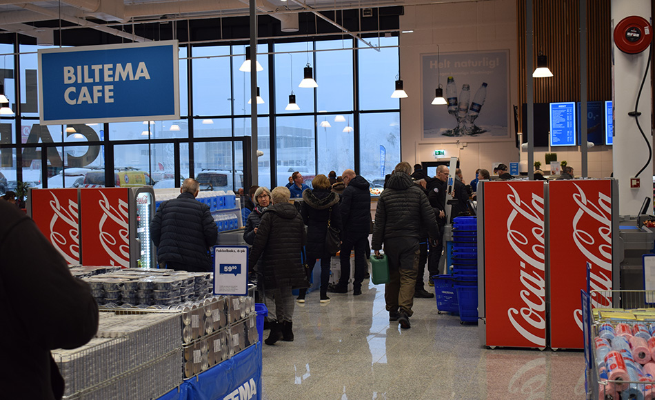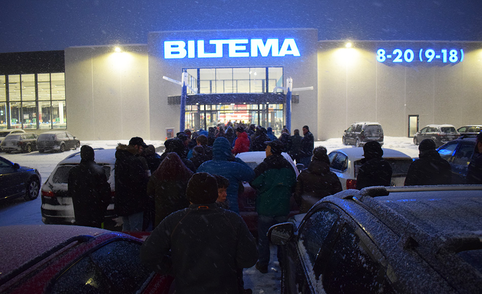 Utover morgentimene fikk man øye på stadig flere og flere kjøretøy ute på den store parkeringsplassen, og cafeen ble gradvis fylt opp med nysgjerrige besøkende som gransket menyen etter gode matbiter til lave Biltema-priser.