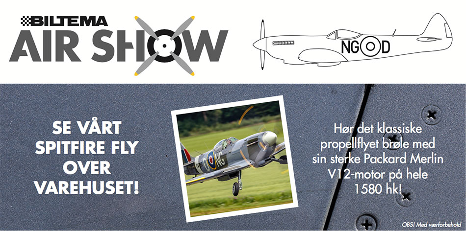 Hvis været tillater det så vil de fremmøtte kunne se en spektakulær «Biltema Airshow» oppvisning med vårt 12 sylindere Supermarine Spitfire jagerfly.