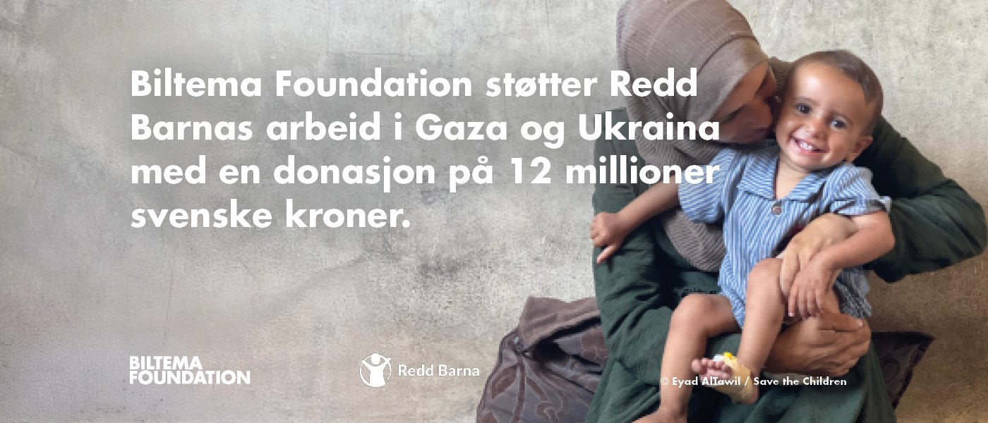 Biltema Foundation donerer 12 millioner svenske kroner til Redd Barna for arbeidet i Gaza og Ukraina