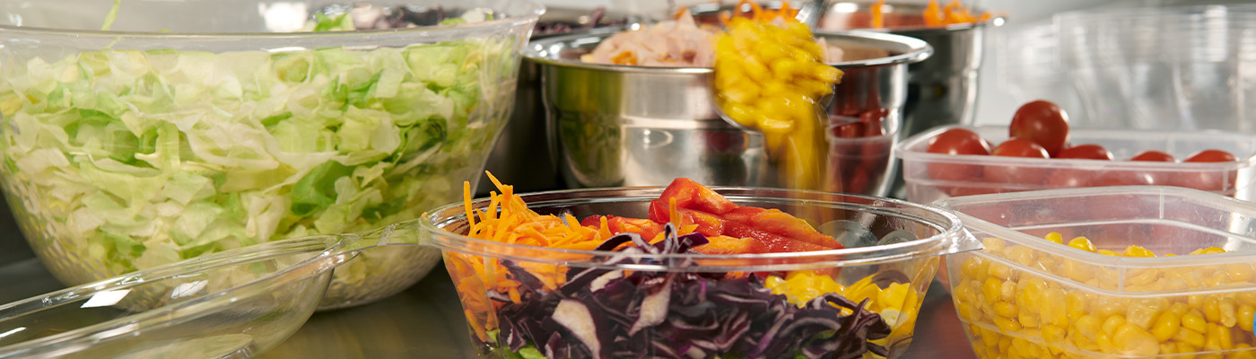 Opplev en variert meny med forskjellige typer baguetter, rundstykker og salater.
