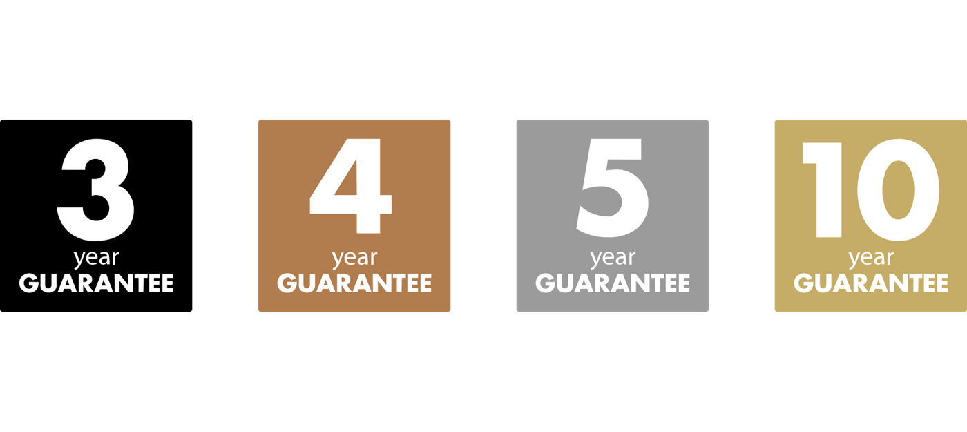 For en del produkter gir vi tre, fire, fem eller ti års garanti. Disse produktene har et eget garantisymbol.