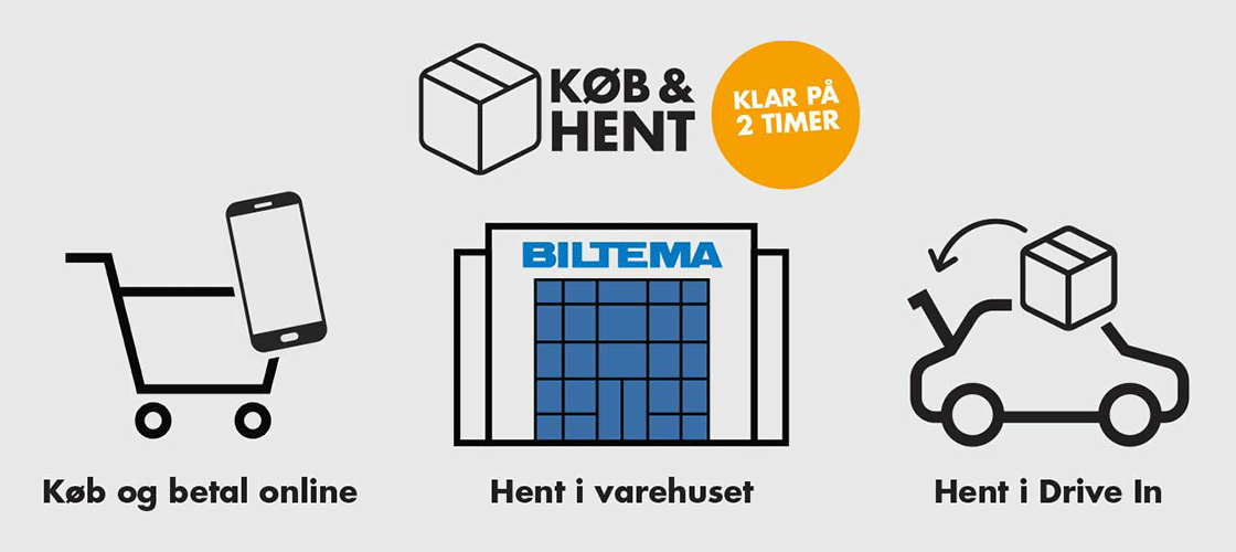 Dersom du har spørsmål knyttet til hvordan Kjøp & Hent-prosessen fungerer, kan du kontakte kundeservice. Våre medarbeidere på kundeservice er klare til å svare på spørsmålene dine på kundeservice@biltema.no eller på 22 22 20 22 (hverdager 08.00-18.00).